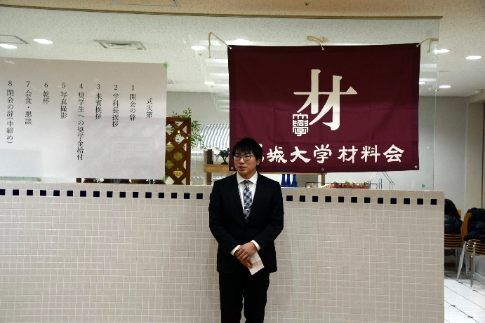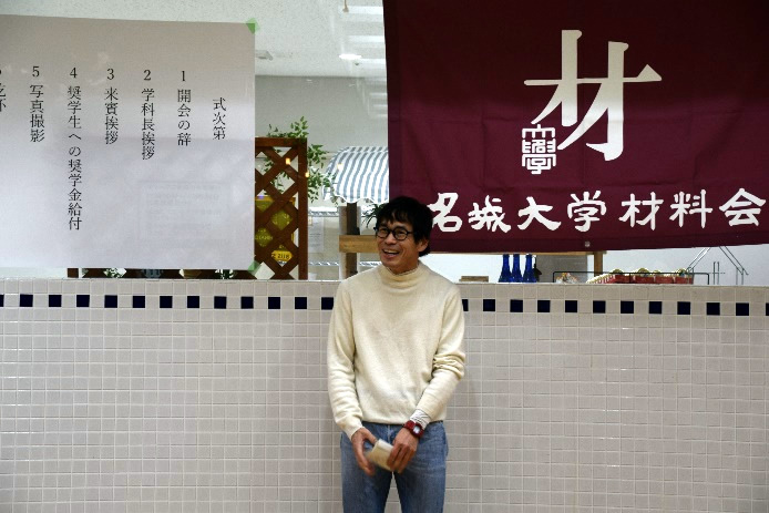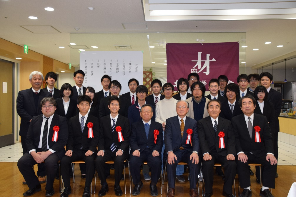 式典では、六田英冶学科長から挨拶をしていただき、材料会の益々の発展のため、激励の言葉をいただきました。