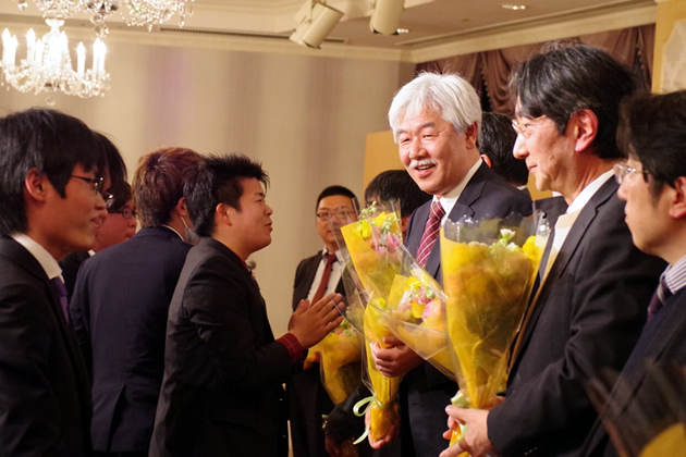 ~卒業祝賀パーティー お世話になった教授の皆様への花束贈呈~